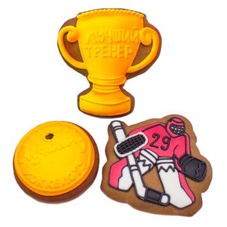 Может быть изготовлен с любым логотипом на любом прянике, в корпоративных цветах, а также может состоять из ванильного печенья (каждый заказ обсуждается индивидуально в зависимости от объема).