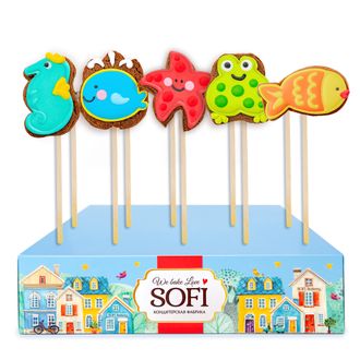 Печенье медовое "Морские животные" на палочке, 20 шт