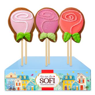 Пряник "Роза" на палочке, 12 шт