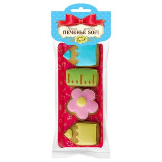 Состав продукта: мука пшеничная в/с; масло сливочное (пастеризованные сливки); сахар-песок; сахарная пудра; мед натуральный; продукты яичные пастеризованные; посыпка кондитерская (сахар, крахмал кукурузный, глазирователи (карнаубский воск, шеллак)); разрыхлитель (гидрокарбонат натрия (сода пищевая) и пирофосфат натрия; кукурузный крахмал); какао-порошок; соль пищевая; ароматизатор (ванилин); корица молотая; имбирь молотый, сухой яичный белок; красители пищевые натуральные (аннато, куркумин, бетаин, кармин, экстракт спирулины синей, экстракт сафлора, уголь растительный, колер карамельный).